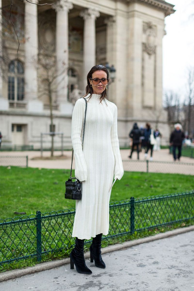 Một chiếc đầm len cổ lọ màu trắng với đôi boots da tới gối là bộ đôi hoàn hảo cho bạn cảm thấy sảng khoái suốt mùa đông.