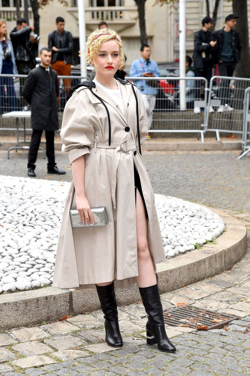 Đáng chú ý nhất là chiếc thắt lưng của Julia Garner khi diện bộ váy hào nhoáng có đường xẻ tà chân bắt mắt theo phong cách Angelina Jolie hiệu Miu Miu.