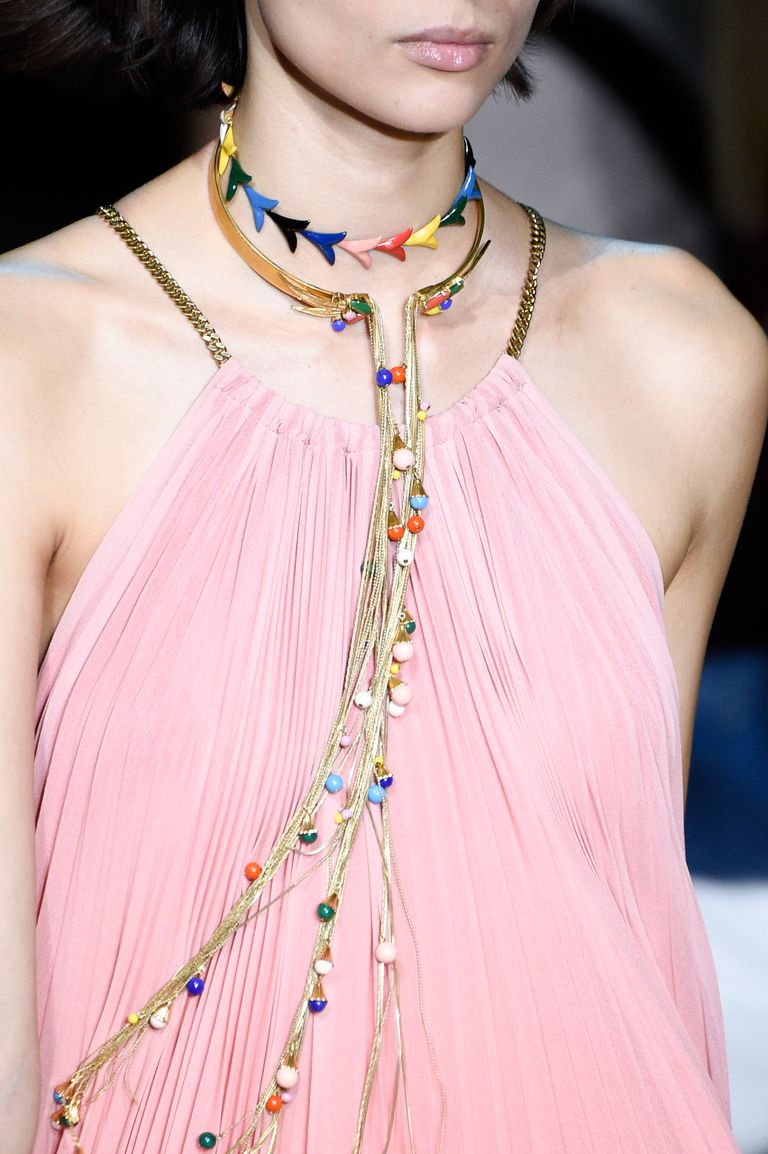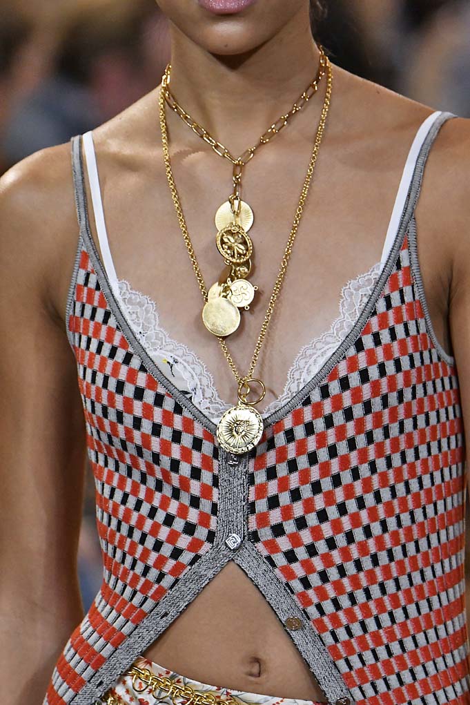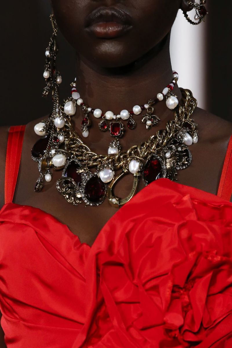 Trong khoảng thời gian gần đây, vòng cổ thanh lịch và khuyên tai cổ điển đang dẫn đầu xu thế thời trang. Nhưng trên sàn diễn Spring 2019, đã đến lúc ta chào đón sự trở lại của trang sức một cách tối đa nhất: từ vòng cổ bản bản to truyền thống tới vòng hoạ tiết đính kim cương, vòng cổ choker, khuyên tai bản lớn, ngoài ra còn có sự trở lại của các loại vòng tay khác. Qua đó, có thể thấy sắp tới đây sẽ là mùa của trang sức đá quý. Để sẵn sàng cho sự trở lại tối đa này, dưới đây là các mẫu trang sức nổi bật nhất xuất hiện trong sàn diễn Spring 2019 vừa qua. Từ New York đến Paris, ta hãy cùng chiêm ngưỡng và đoán xem món trang sức nào sẽ phù hợp với xu hướng phụ kiện sắp tới nhé.
